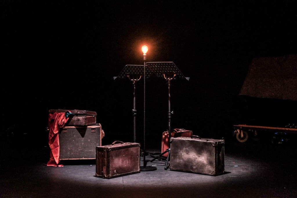 Nous jouons avec un espace-temps distordu. Les spectateurs seront conviés à un voyage qui promet quelques secousses ! Ils pourront plonger des villes parcourues par Millie pendant sa tournée européenne, des espaces intimes (chambre, café), des espaces inhospitaliers (grands espaces vides, douane, gares), des espaces naturels (une forêt, une grotte). Nous représentons ces époques et ces espaces de manière à les faire cohabiter. Les scènes sont conçues comme des tableaux avec une époque, une histoire, un espace, un style, une iconographie très précise. La scénographie est légère, modulable et conçue pour laisser les comédiens libres de changer d’espace-temps fictionnel rapidement. Pour suggérer les différents lieux, nous réutiliserons les codes du théâtre de tréteaux et ceux du music-hall : des petites scènes faites de palettes de bois, des pans de murs en carton-pâte volontairement rustiques et modestes, des accessoires qui renvoient à l’itinérance (une cariole, des valises…). Dans le travail de la lumière, plutôt que d’appuyer sur la distinction entre le dedans et le dehors, nous suggérons les différentes temporalités en travaillant sur les couleurs, les contrastes et les lumières naturelles (le traitement du feu, les feuillages des forêts) pour convoquer des paysages.